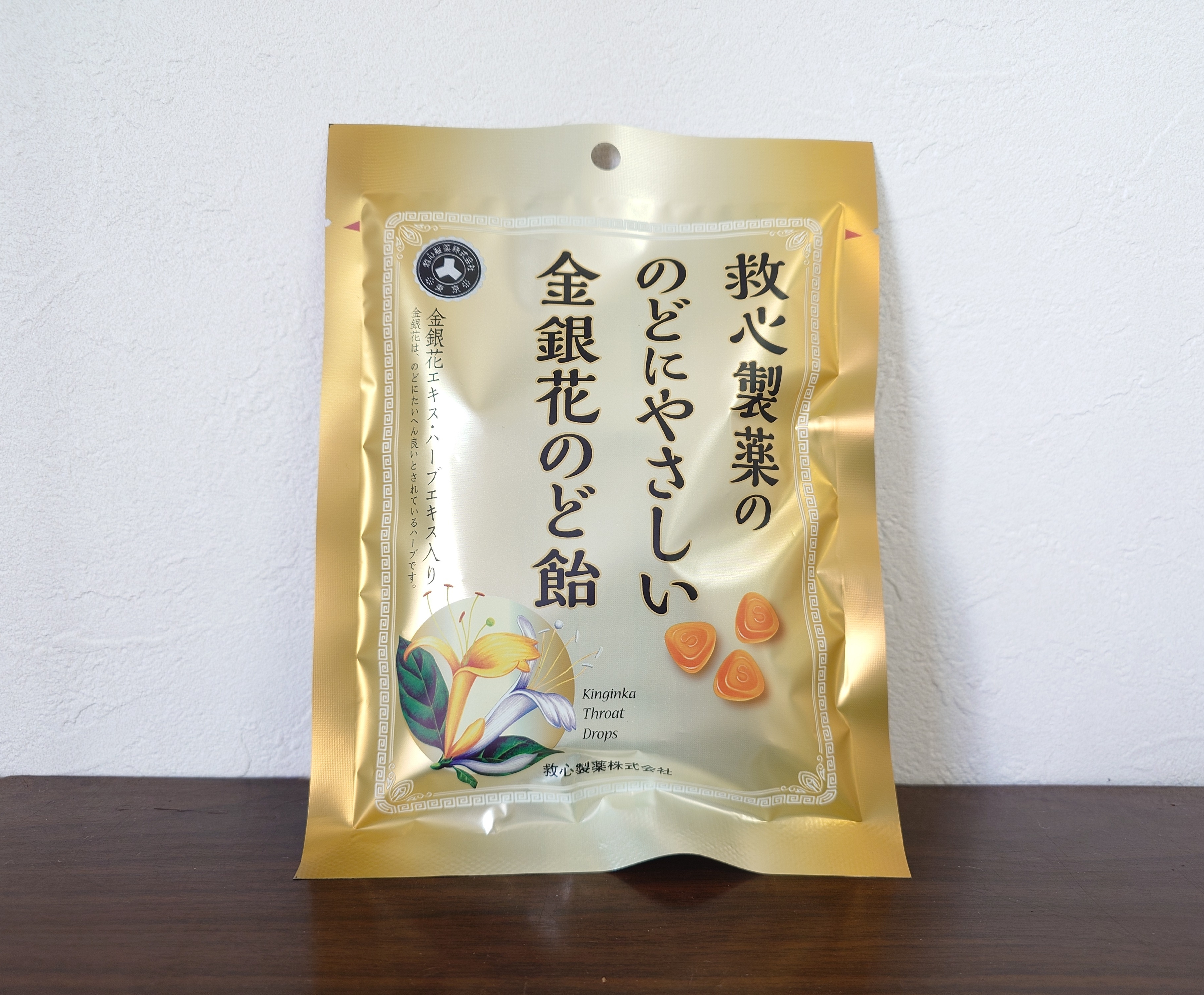 金銀花のど飴70g(税込324円)金銀花エキス・ハーブエキス配合、のどにやさしくスッキリとしたのど飴です。